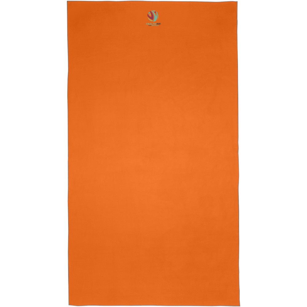 A Pieter sporttörülköző nagyon jó nedvszívó, könnyű, gyorsan szárad, az anyaga pedig tartós és rendkívül puha. Ha a törölközőt összehajtjuk és gumiszalaggal rögzítjük, kis méretűre csomagolható, így alkalmas arra, hogy magunkkal vigyük az edzőterembe, uszodába, vagy ha hátizsákos túrára, esetleg kempingezésre megyünk. A törülköző 100 x 180 cm méretű, 90% GRS újrahasznosított poliészterből és 10% nejlonból készült, és 40 °C-on mosható mosógépben. Újrahasznosított PET műanyagból készült tároló tasakkal (25 x 8,5 cm) szállítjuk. Emblémázás: Hímzés, Szitanyomás