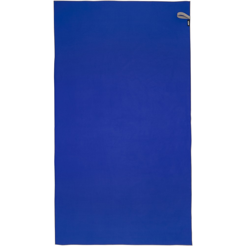 A Pieter sporttörülköző nagyon jó nedvszívó, könnyű, gyorsan szárad, az anyaga pedig tartós és rendkívül puha. Ha a törölközőt összehajtjuk és gumiszalaggal rögzítjük, kis méretűre csomagolható, így alkalmas arra, hogy magunkkal vigyük az edzőterembe, uszodába, vagy ha hátizsákos túrára, esetleg kempingezésre megyünk. A törülköző 100 x 180 cm méretű, 90% GRS újrahasznosított poliészterből és 10% nejlonból készült, és 40 °C-on mosható mosógépben. Újrahasznosított PET műanyagból készült tároló tasakkal (25 x 8,5 cm) szállítjuk. Emblémázás: Hímzés, Szitanyomás