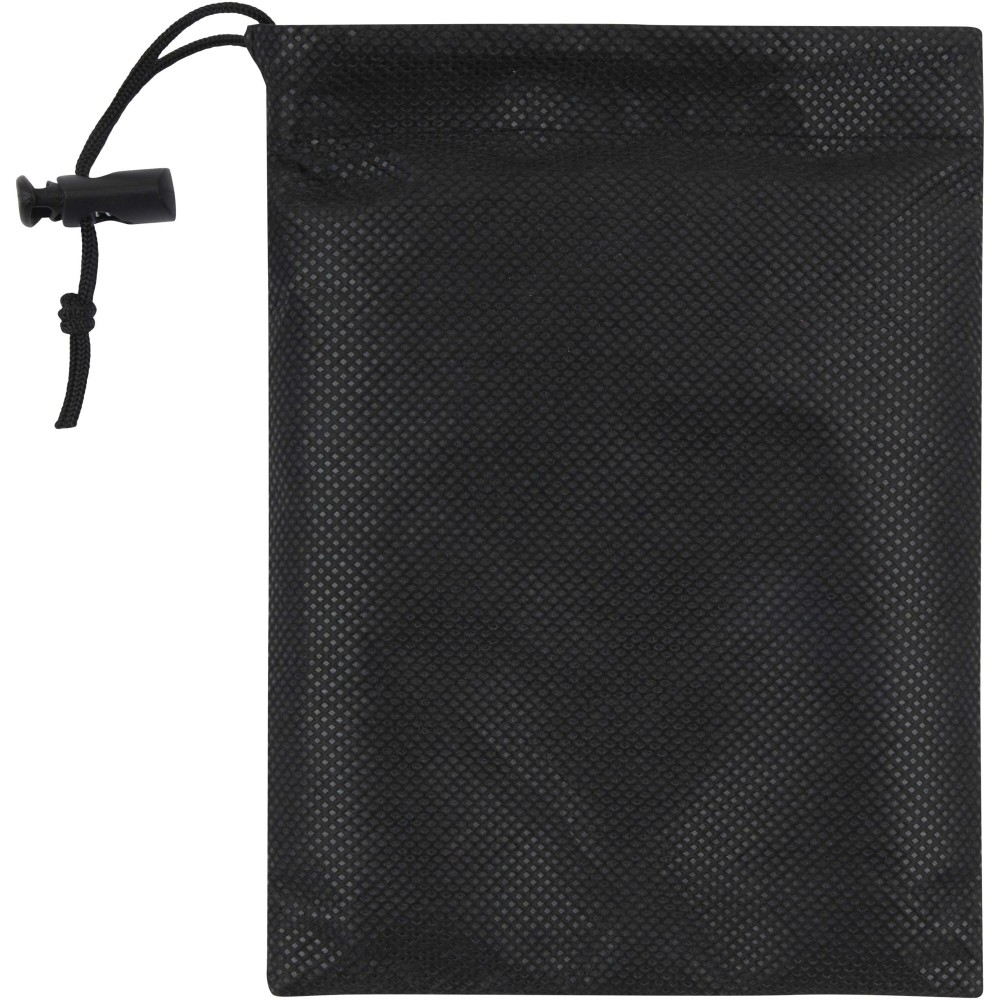 A Lucas RPET sporttörölköző 100%-ban újrahasznosított poliészterből készült, puha és nedvszívó felületet biztosít, így ideális edzéshez vagy szabadtéri tevékenységekhez. 140 g/m2 súlyával a tartósságot és a könnyed kényelmet ötvözi. A törölköző praktikus műanyag pánttal van ellátva, amellyel mind a törölközőt, mind a tasakot biztonságosan rögzítheted, megkönnyítve a hordozást és tárolást. A csomag egy tasakkal (13 x 18 cm) is rendelkezik, amely szintén 100%-ban újrahasznosított poliészterből készült. A törölköző mérete: 50 x 100 cm. Emblémázás: Hímzés, Szitanyomás