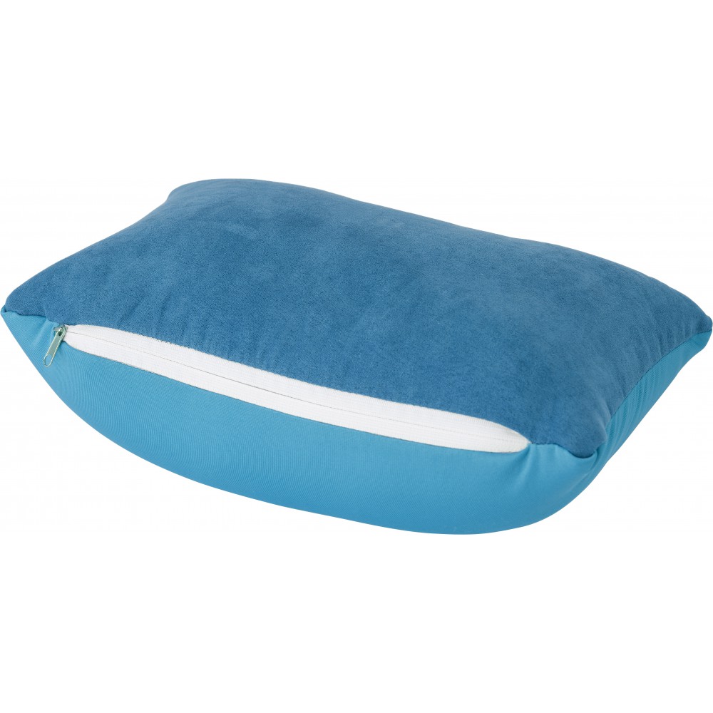 2in1 utazópárna polifoam gyöngyökkel töltve. A formája nyaktámasztó körpárnából négyszögletes hagyományos formára alakítható a cipzár segítségével. Puha, bársonyos tapintású anyag. Emblémázás: Szitanyomás