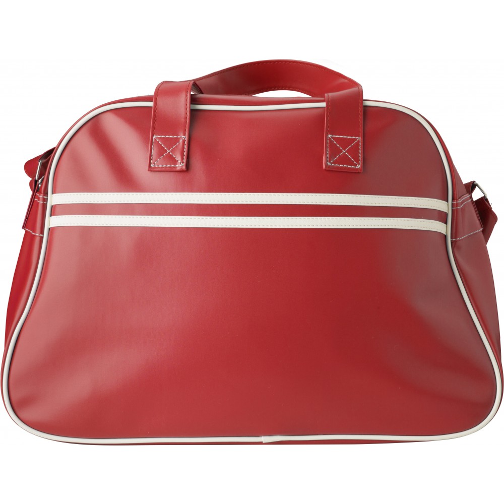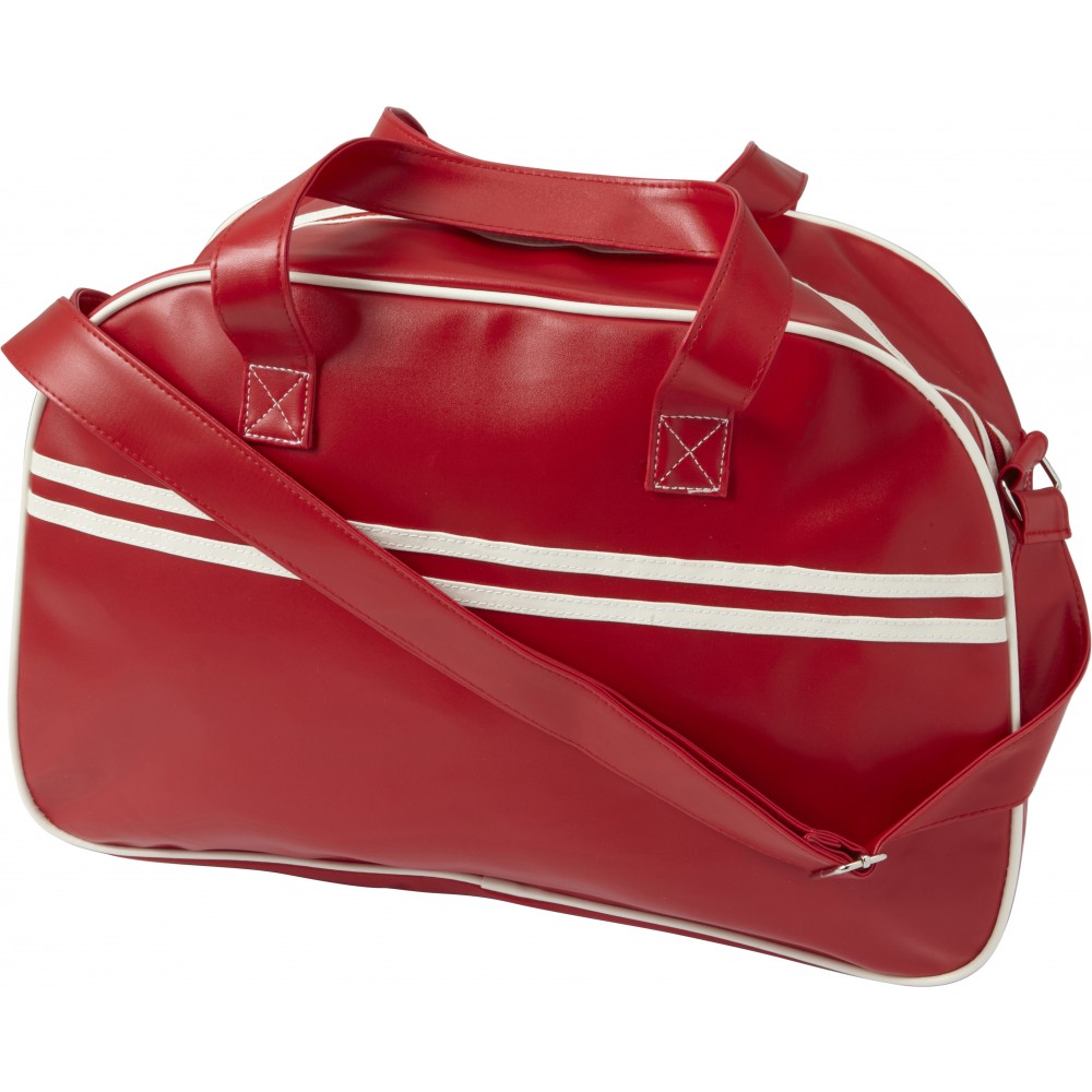 Sporttáska fehér csíkokkal és szegéllyel, állítható vállpánttal. PVC. Emblémázás: Szitanyomás