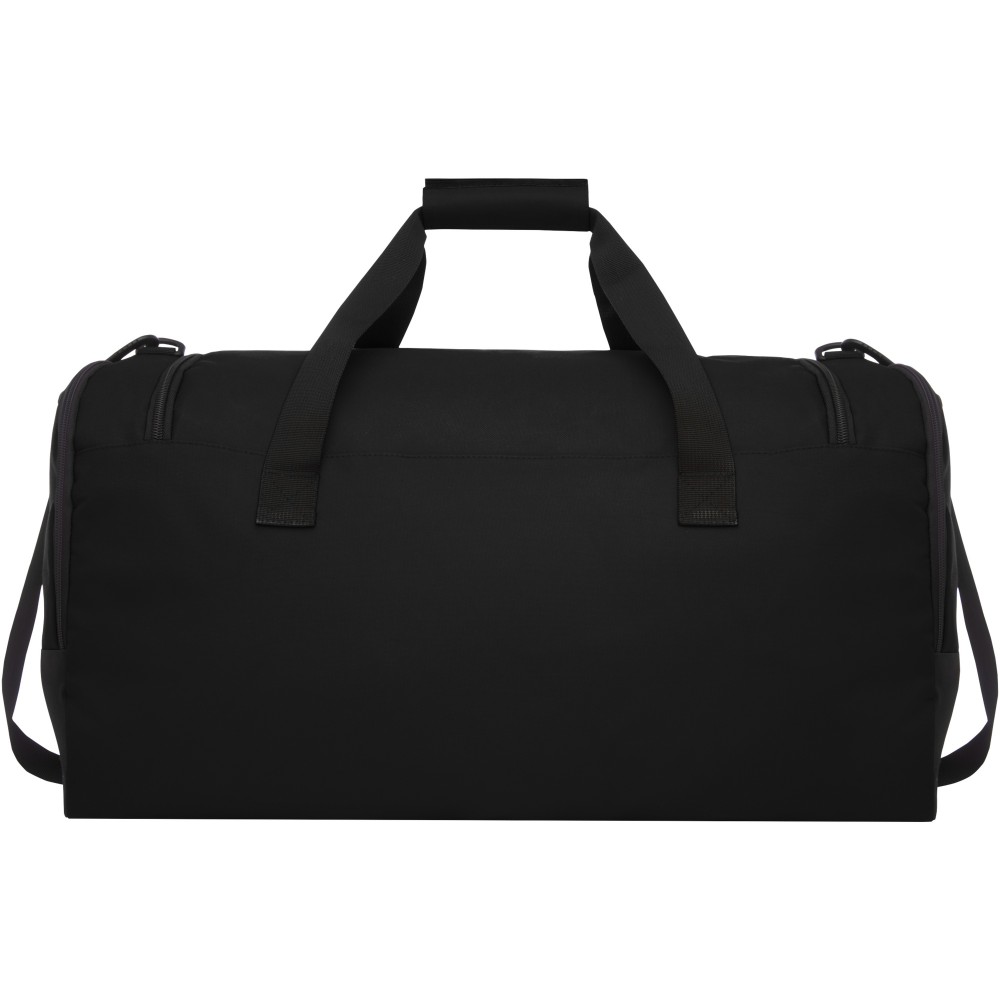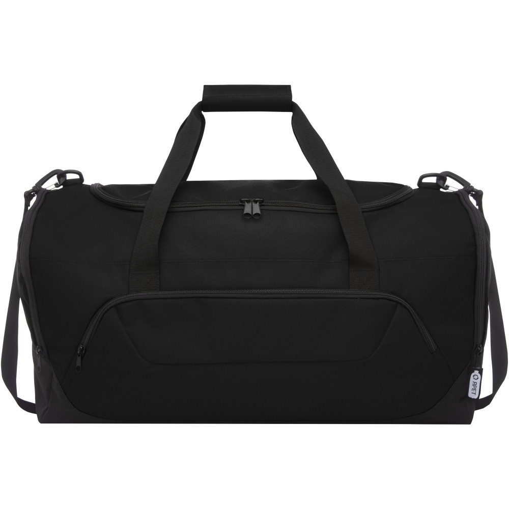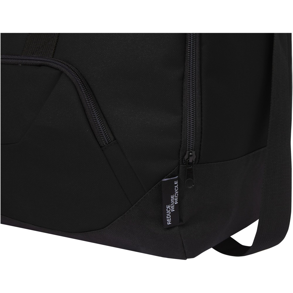 Erős táska 100% -ban újrahasznosított műanyagból, amellyel hozzájárul a műanyag hulladék csökkentéséhez. Nagyméretű fő rekesz és első cipzáras zseb, párnázott vállpánt és párnázott fogantyú. Körülbelül 27 műanyagpalack újrahasznosításával készült. 600D poliészter. Emblémázás: Szitanyomás
