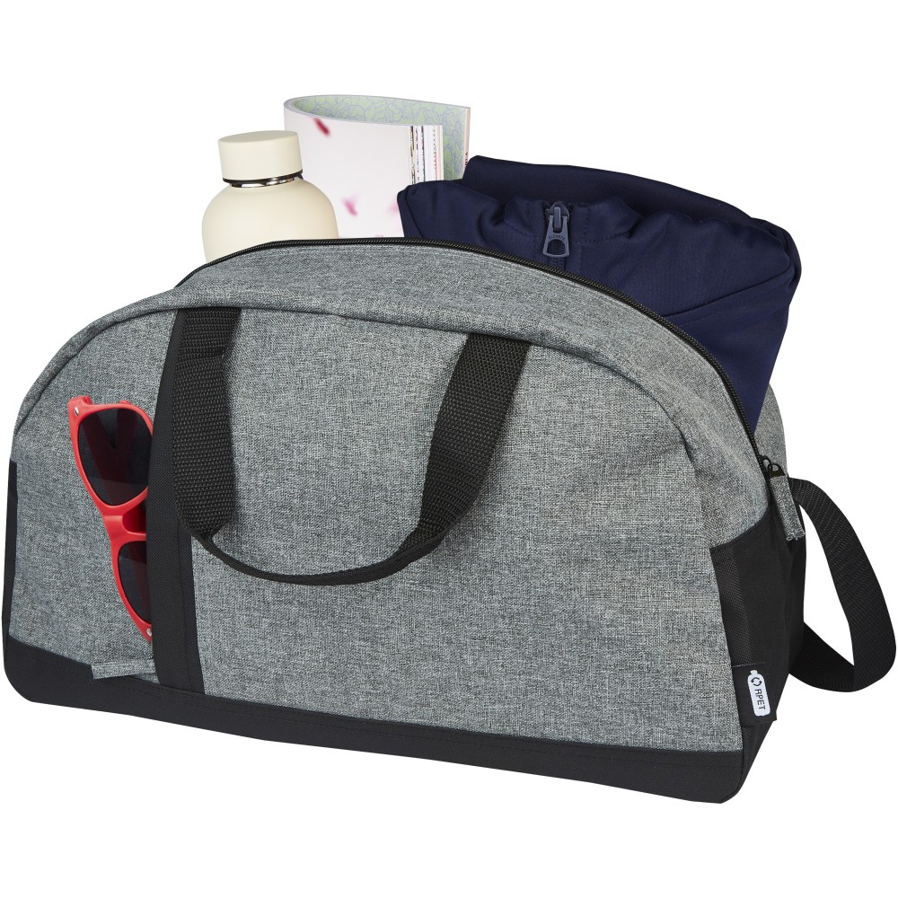 A Reclaim GRS újrahasznosított kéttónusú sporttáska 100%-ban újrahasznosított anyagokból készült, és egy függőleges cipzáras elülső zsebbel és egy tágas, cipzáras fő rekesszel rendelkezik. Elrejthető fogója és állítható vállpántjai kényelmes viseletet eredményeznek. Emblémázás: Hímzés, Szitanyomás