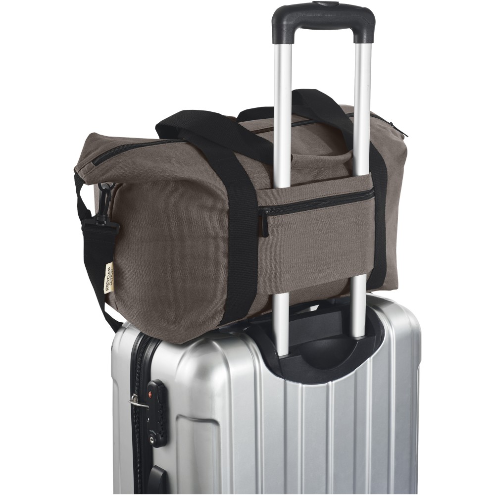 A rendkívül tartós és fenntartható anyagokból, GRS újrahasznosított vászonból és GRS RPET béléssel készült 25 literes Joey sporttáska tágas, cipzáras főrekesszel és egy belső cipzáras zsebbel rendelkezik a biztonság érdekében. Egy nyitott elülső zseb és egy másik pántos cipzáras zseb hátul, valamint megerősített hevederes fogókkal vagy a levehető és állítható vállpánttal a kényelem érdekében. Emblémázás: Szitanyomás