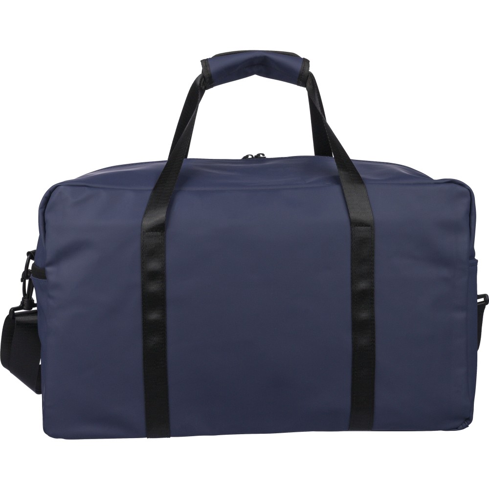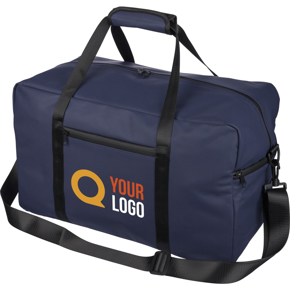 Újrahasznosított PU anyagból készült sporttáska 35 literes űrtartalommal, 210D újrahasznosított poliészter béléssel. 108 cm hosszúságú és 2,5 cm szélességű fogantyúval rendelkezik tépőzáras rögzítéssel, valamint 130 cm hosszúságú és 3,9 cm szélességű állítható vállpánttal. Elülső cipzáras zsebbel és nagy fő rekesszel készül. A belső címkén újrahasznosított alapanyagra utaló logó található. Emblémázás: Szitanyomás