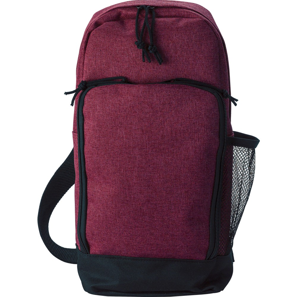 Nagy keresztpántos válltáska egy állítható pánttal. Egy nagy rekesz, egy cipzáras elülső zseb és egy hálós zseb az oldalán. 600D poliészter. Emblémázás: Szitanyomás