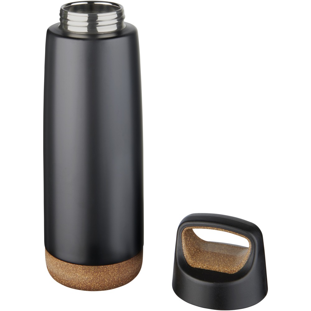 Duplafalú sportpalack réz-vákuumos szigeteléssel. Hidegtartó képesség 48 óra, melegtartó képesség 12 óra. A duplafalas kialakításnak köszönhetően nincs párakicsapódás. Csavaros fedél parafa berakással. Szivárgásmentes. Szénsavas italokkal nem használható. Mosogatógépben nem mosható és mikrohullámú sütőben történő melegítésre nem alkalmas. Űrtartalom: 600 ml. Csomagolása Avenue díszdoboz. Rozsadamestes acél és parafa. Emblémázás: Gravírozás