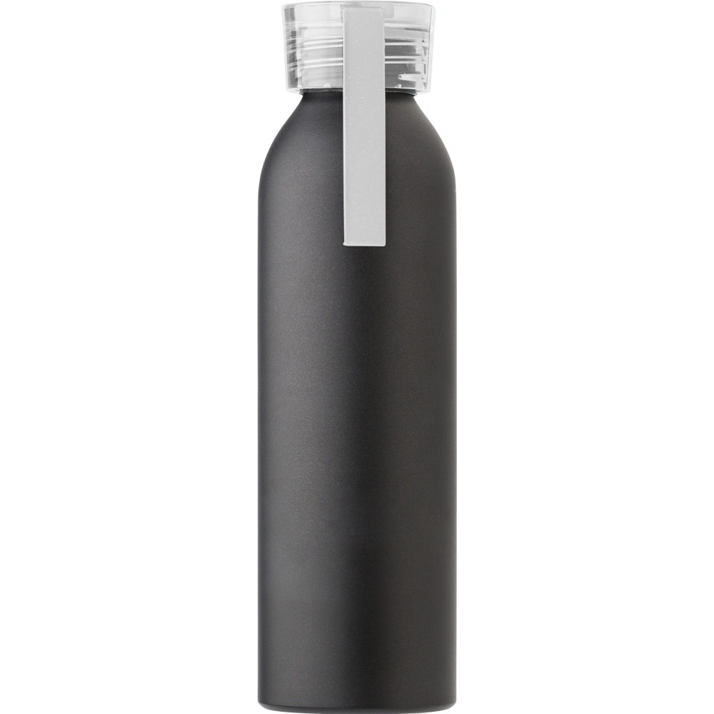 Fényes felületű palack színes kupakkal és szilikon pánttal. Csak hideg víz tárolására alkalmas. Nem szivárgásmentes. Mosogatógépben nem tisztítható. PS műanyag és alumínium. Űrtartalom: 650 ml. Emblémázás: Gravírozás, Tamponnyomás