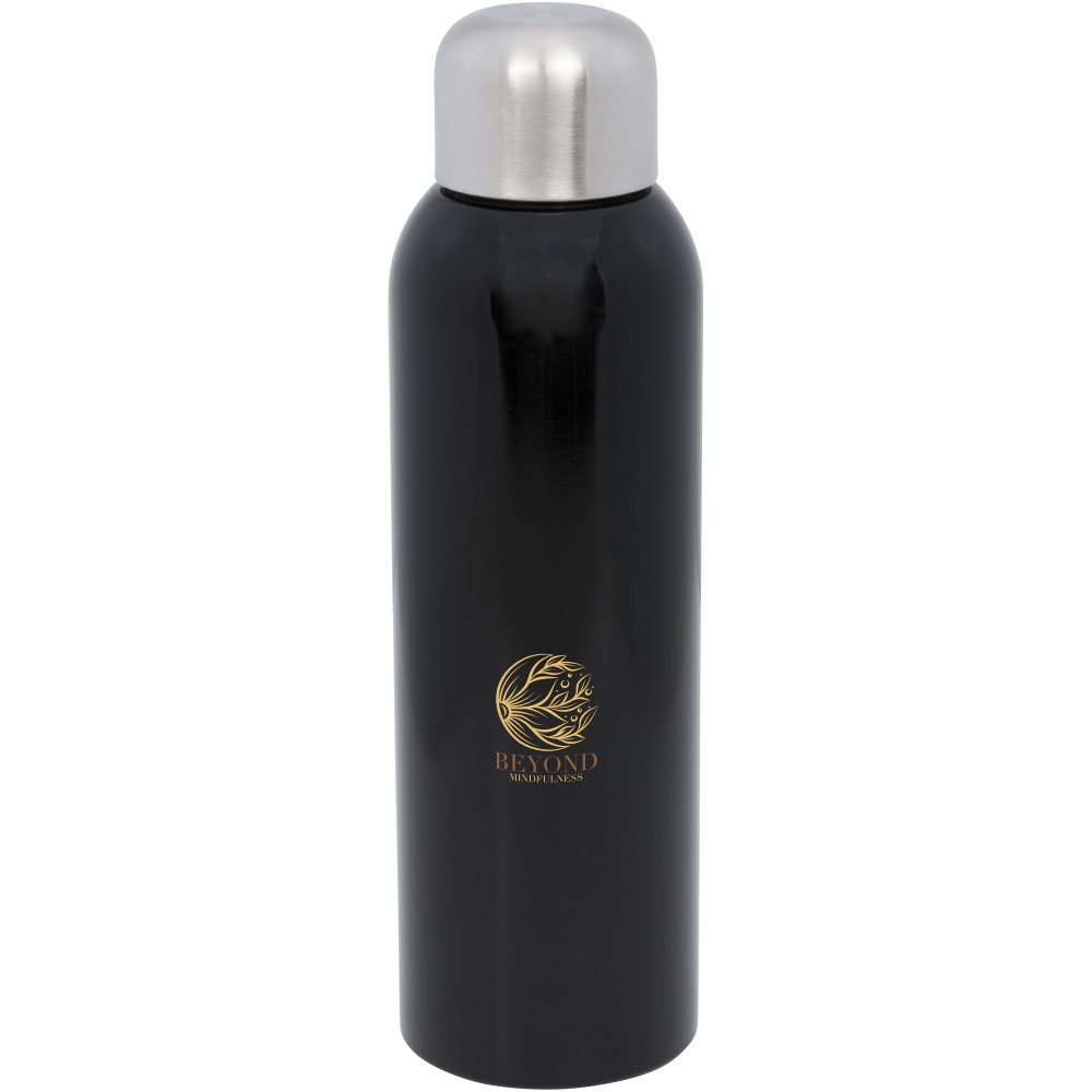 A Guzzle egy elegáns kialakítású, újrahasznosított vizes palack, amelynek csavaros fedele könnyen nyitható és zárható. Az egyfalú palack tökéletes utazásokhoz, mivel nem kevesebb, mint 820 ml folyadék tárolására alkalmas. A palack RCS tanúsítvánnyal rendelkező, újrahasznosított rozsdamentes acélból készült, ezért strapabíró és hosszú élettartamú. Emblémázás: Gravírozás