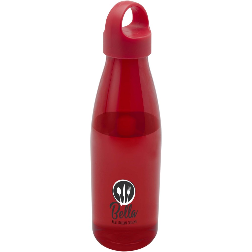 RCS tanúsítvánnyal rendelkező RPET-ből készült kulacs, amely praktikus, a kupakba integrált hordozófüllel rendelkezik. EFSA (Európai Élelmiszerbiztonsági Hatóság) tanúsítvánnyal rendelkezik. Űrtartalma: 800 ml. BPA-mentes. Emblémázás: Tamponnyomás, UV nyomtatás