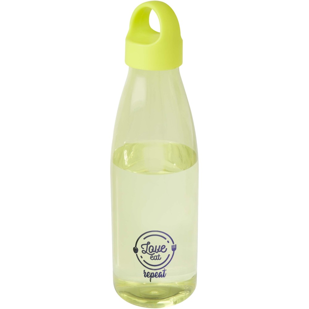 RCS tanúsítvánnyal rendelkező RPET-ből készült kulacs, amely praktikus, a kupakba integrált hordozófüllel rendelkezik. EFSA (Európai Élelmiszerbiztonsági Hatóság) tanúsítvánnyal rendelkezik. Űrtartalma: 800 ml. BPA-mentes. Emblémázás: Tamponnyomás, UV nyomtatás