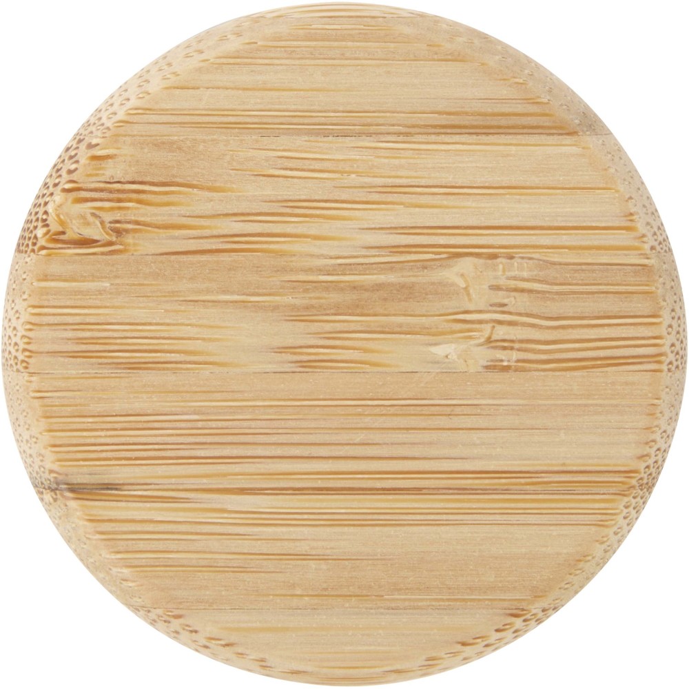 Egyrétegű üveg vizespalack csavaros bambusz fedéllel, fenntartható és társadalmilag felelős forrásból. Szilikon pánttal rendelkezik a könnyű hordozhatóság érdekében. Újrahasznosított karton ajándékdobozban szállítjuk. Űrtartalma: 500 ml. Emblémázás: Gravírozás, Körszita, Tamponnyomás